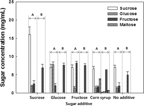 | Sugar source | Sucrose | Glucose | Fructose | Corn syrup | No additive |